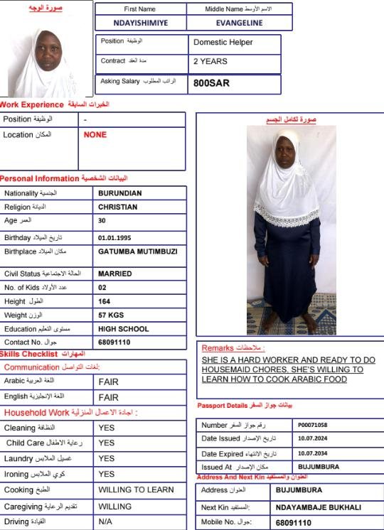 الاسم: | NDAYISHIMIYE EVANGELINE |