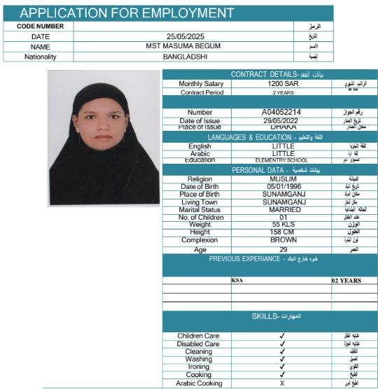 الاسم: | MASUMA BEGUM |