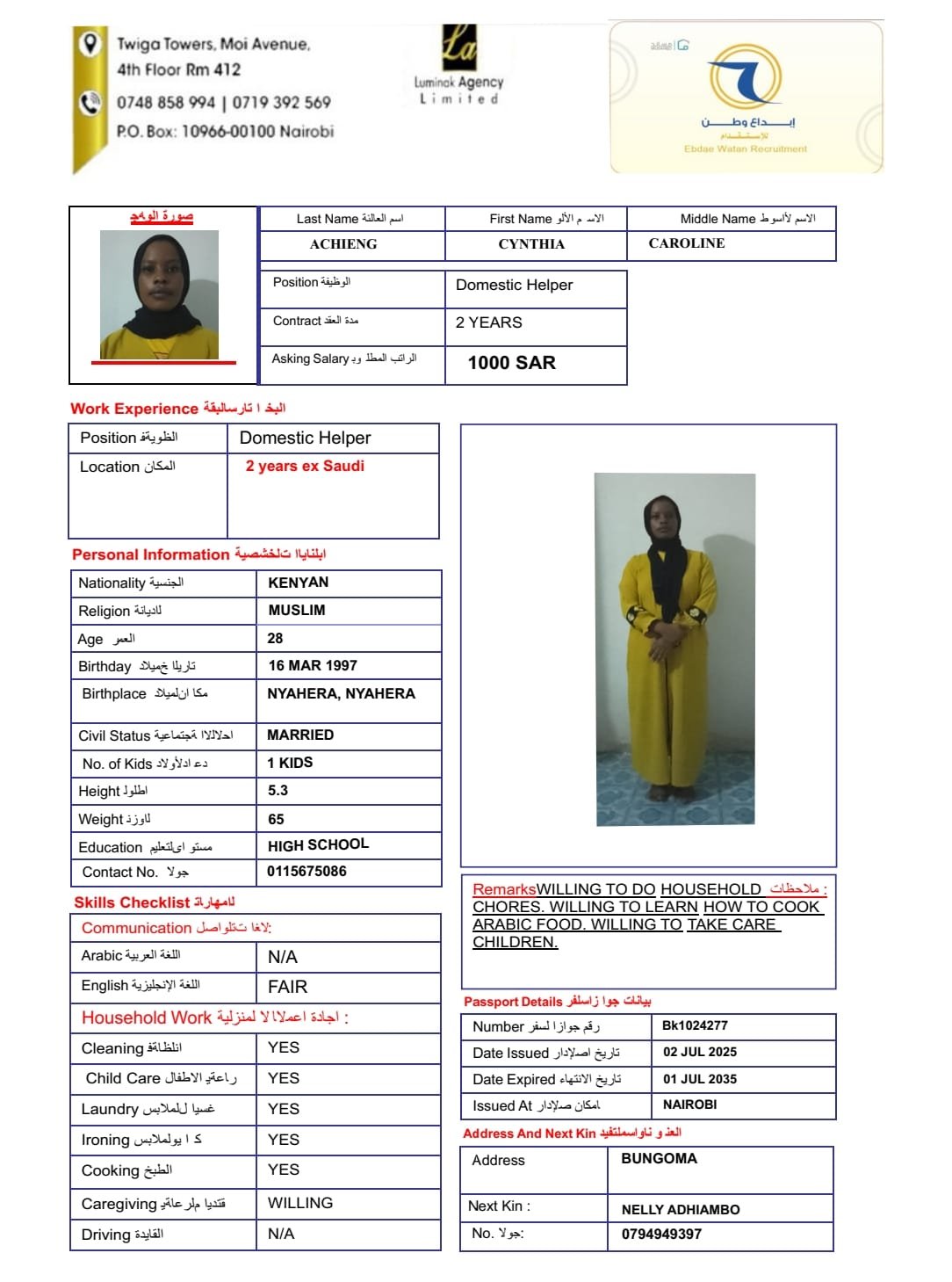 غسيل وكي | رعاية اطفال | رعاية كبار السن | الطبخ | التمريض والاسعافات الاولية |