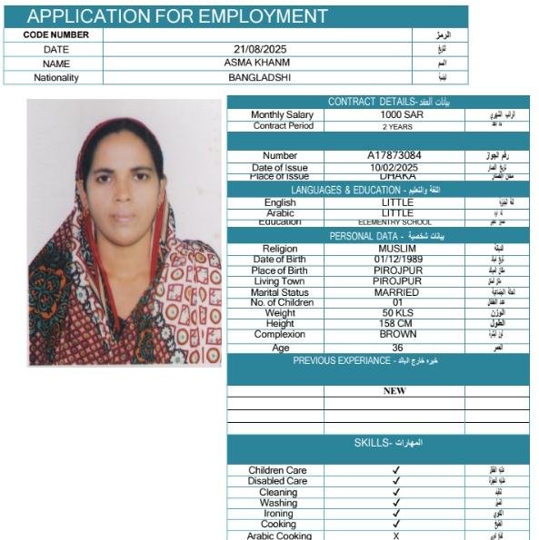 بيانات العاملة