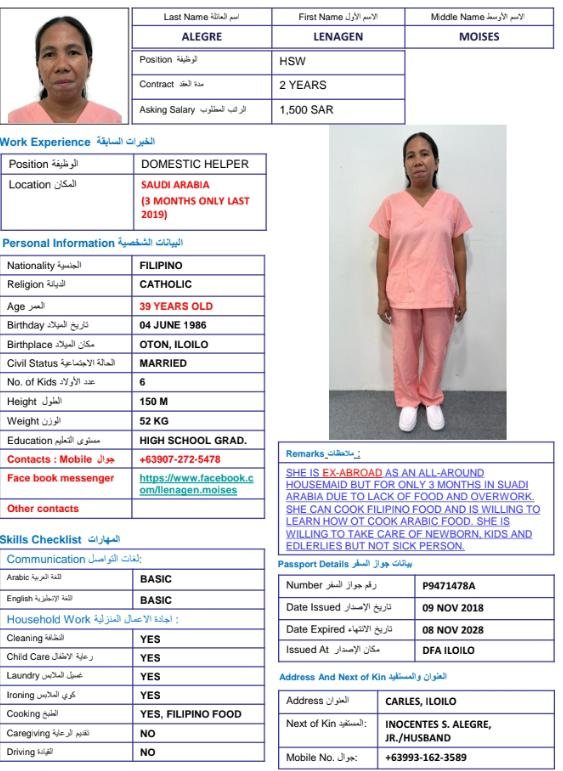 المهنة: | عاملة منزلية |