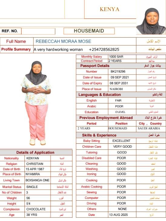 المهنة: | عاملة منزلية |