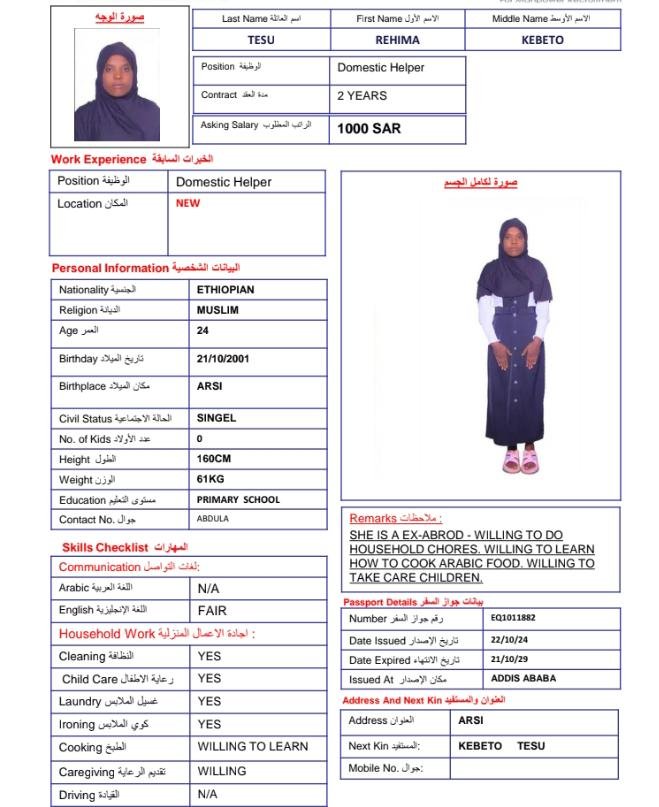 الجنسية: أثيوبيا