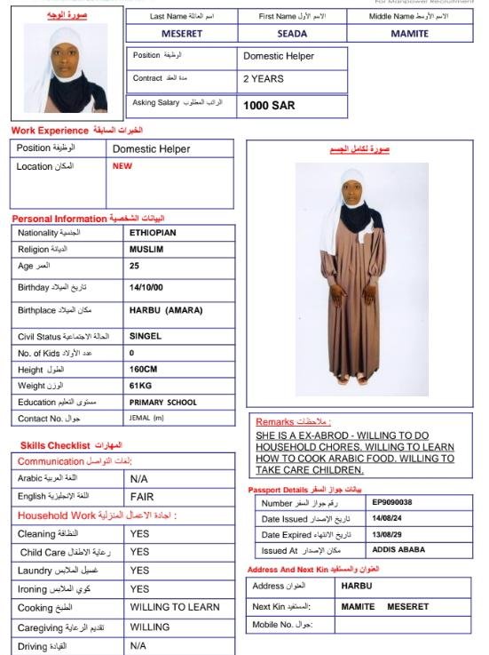 الجنسية: أثيوبيا