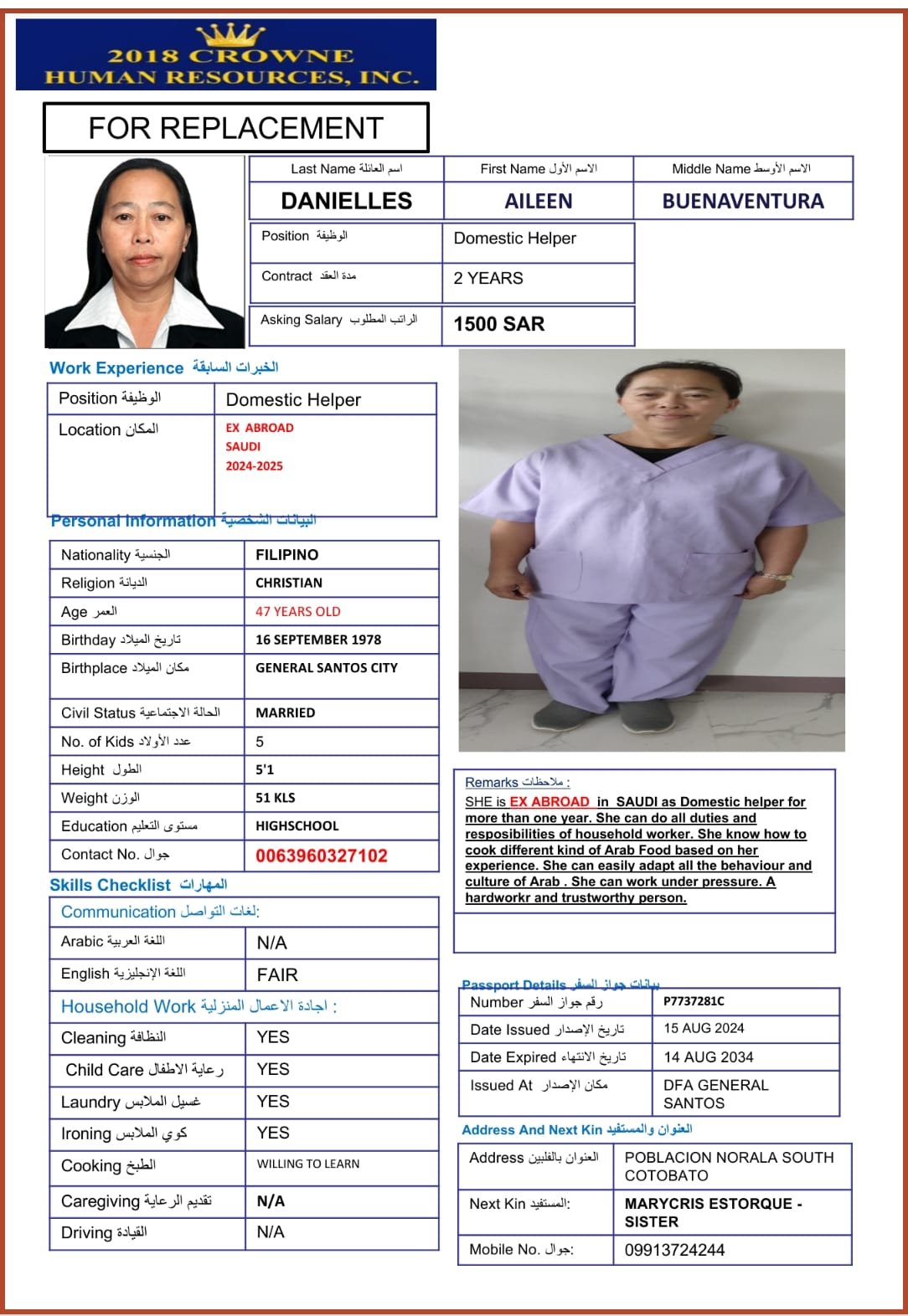 | غسيل وكي | رعاية اطفال | رعاية كبار السن | الطبخ | التمريض والاسعافات الاولية |