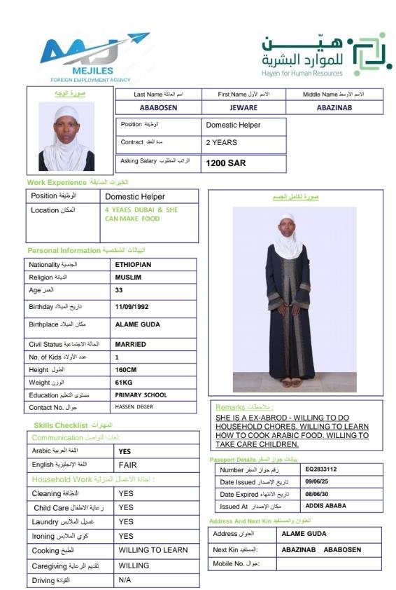 | المهنة: | عاملة منزلية |