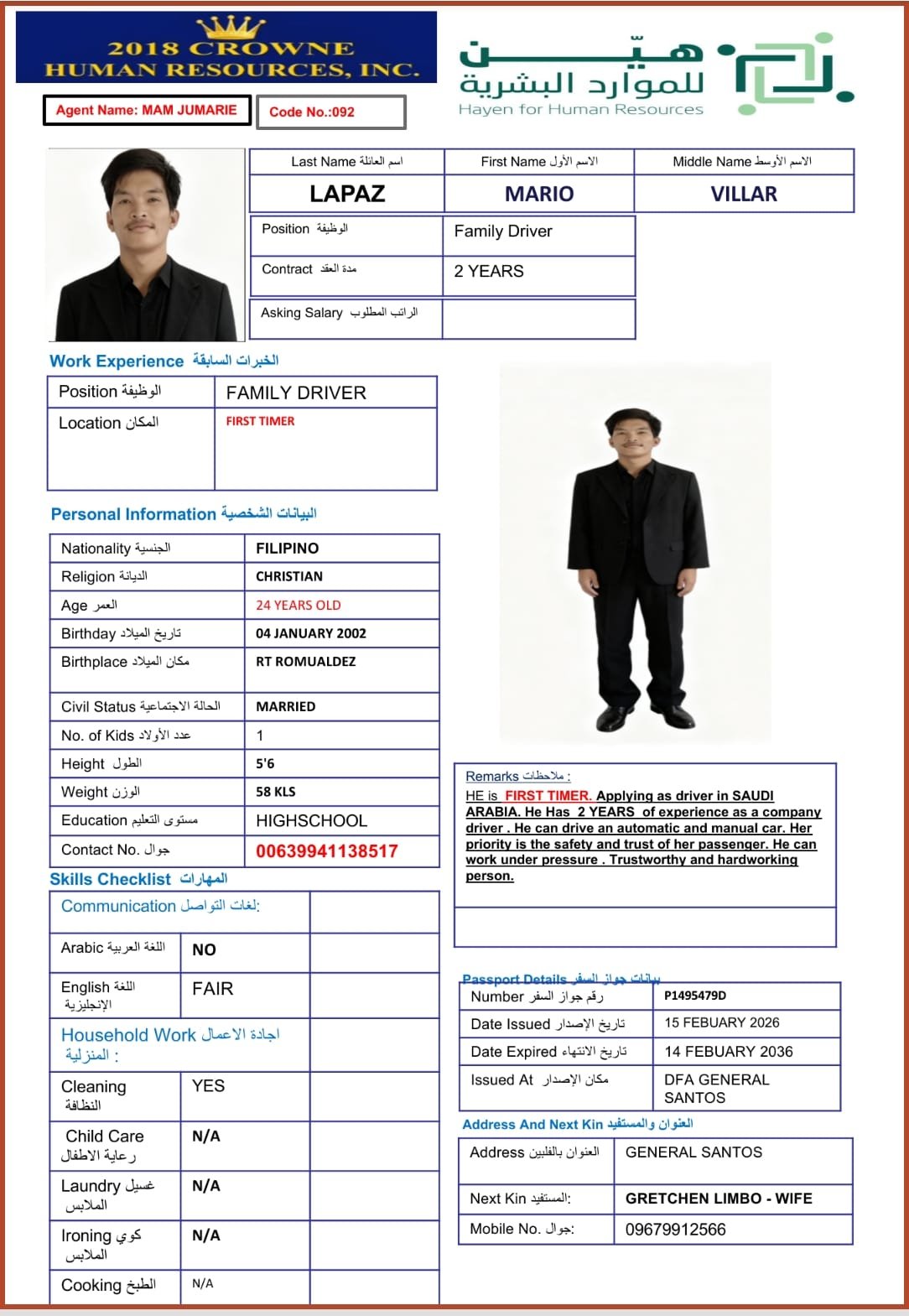 | الاسم: | MARIO VILLAR LAPAZ |