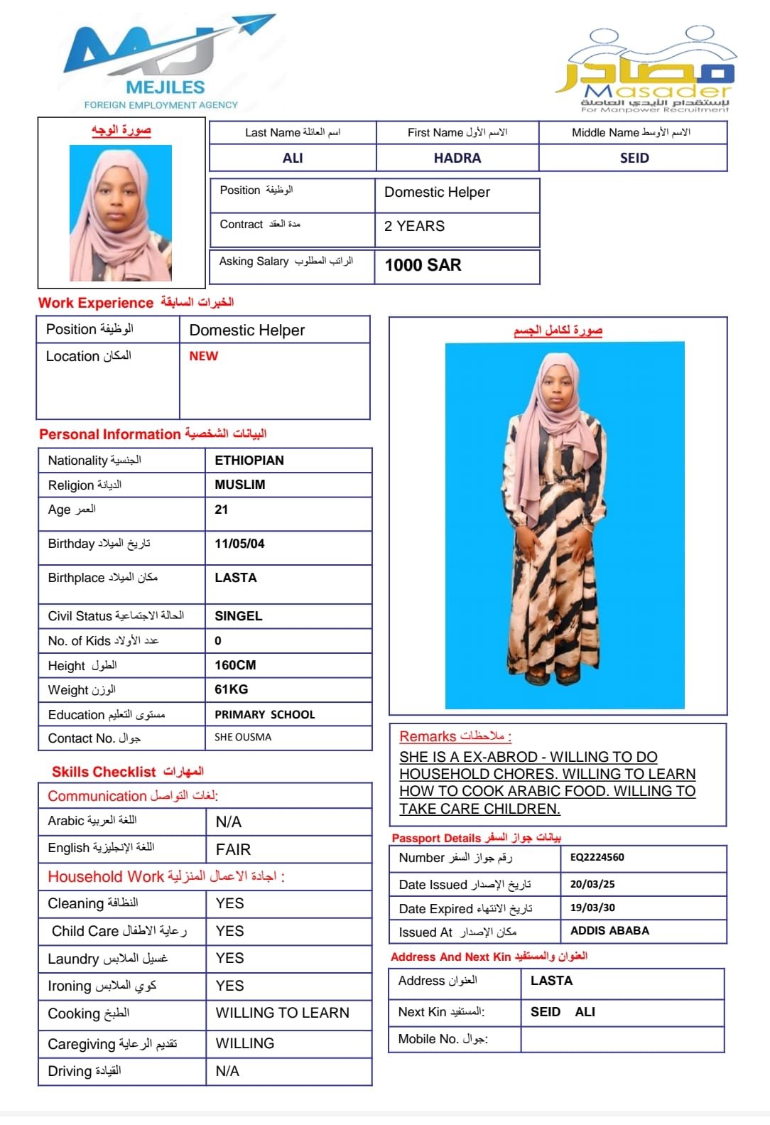 | الاسم: | HADRA ALI |